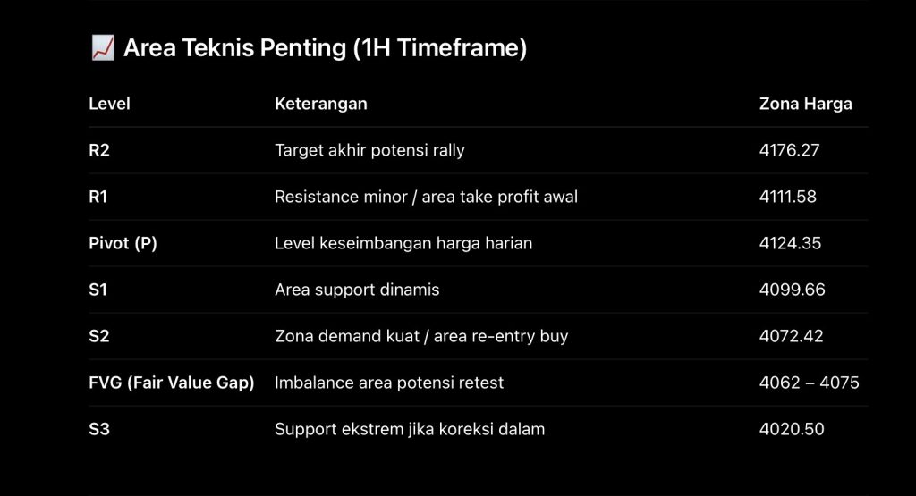 Sentimen ini selaras dengan bias teknikal bullish yang menunjukkan potensi lanjutan rally jika harga bertahan di atas 4060.